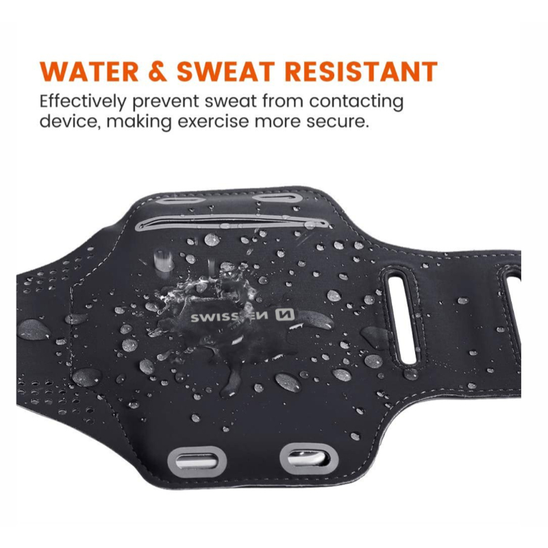A braçadeira Swissten é feita de material impermeável, para que possa suportar facilmente o suor e a chuva não o surpreenderá.