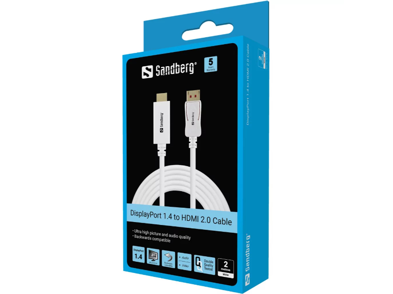 Cabo Sandberg DisplayPort 1.4-HDMI 4K60Hz 2m Branco