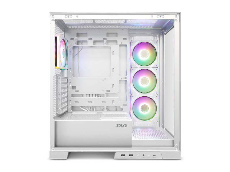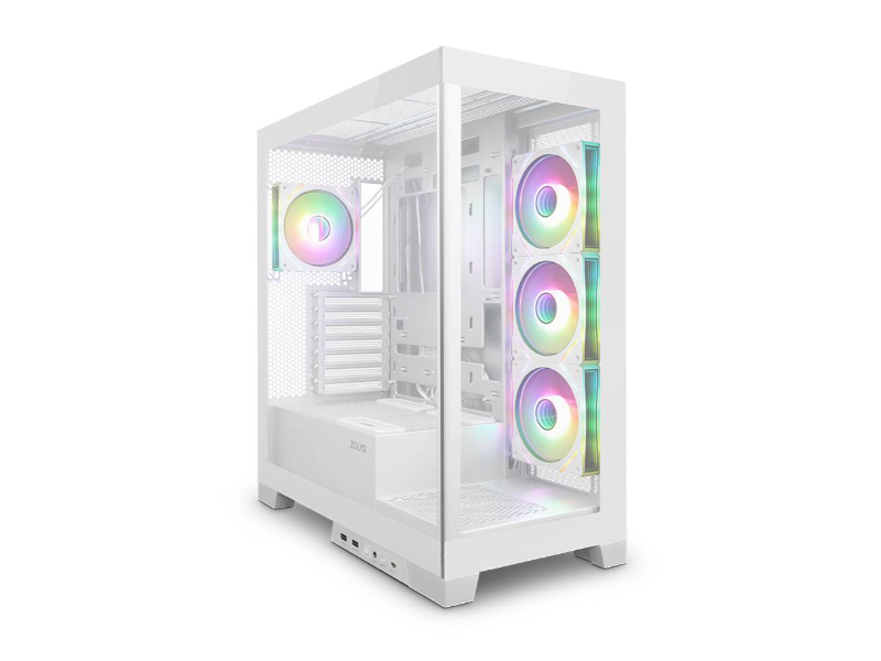A caixa Zolyd Vexora tem um impressionante design que oferece vistas panorâmicas do seu interior. Com vidro duplo temperado, este chassis é uma mistura de design moderno e arte. Esta caixa de aço é compatível com grandes placas gráficas de até 425 mm e sistemas de arrefecimento líquido. Inclui também quatro ventoinhas ARGB. Caixa concebida para lhe oferecer o próximo nível em caixas para PC.