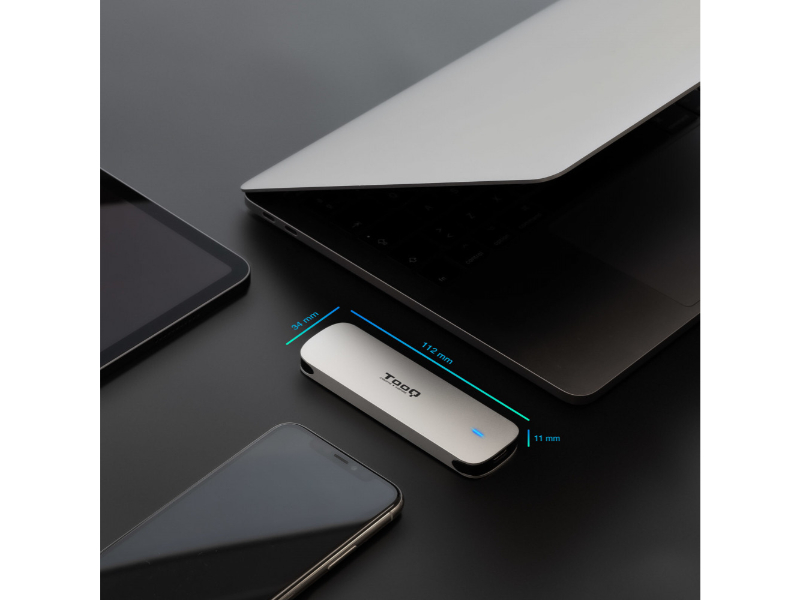 A TooQ TQE-2202S é uma caixa externa elegante e resistente concebida para alojar um SSD M.2 NGFF (SATA). Construída em alumínio prateado, alia durabilidade a um design compacto e moderno, ideal para utilização diária e mobilidade.