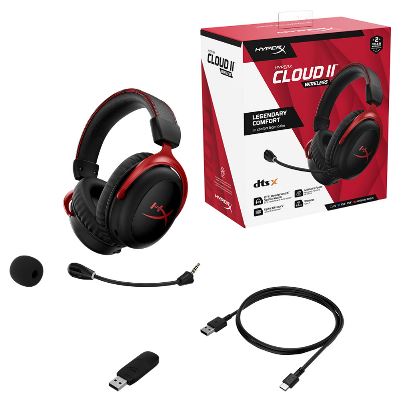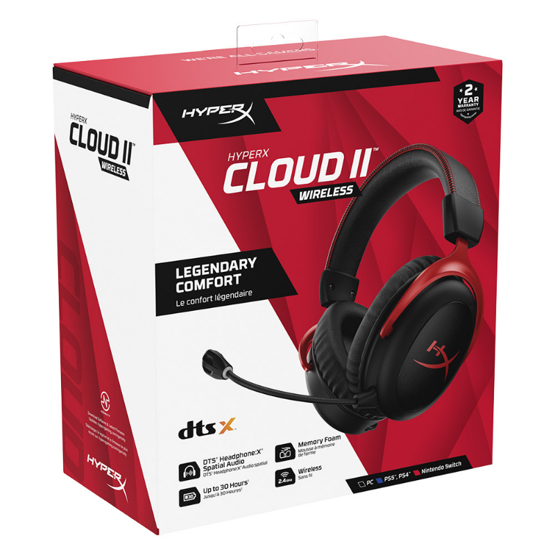Não é de admirar que se tenha tornado o headset preferido por milhões de jogadores. Temos o orgulho de apresentar o HyperX Cloud II Wireless DTS. Com uma rápida ligação sem fios de 2,4Ghz, uma bateria de longa duração de 30 horas*, e 20 metros de alcance sem fios**, está preparado para mais do que um dia inteiro de conforto e liberdade sem fios. Os controladores de 53mm emitem um som impressionante e quando combinados com DTS® Headphone:X®*** áudio espacial pode escapar para os seus mundos de jogo de fantasia favoritos.