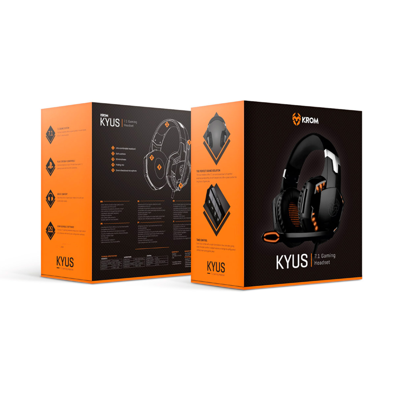 O headset krom Kyus destaca-se pelo seu som envolvente 7.1 de grande qualidade que juntamente com as suas almofadas garantem o máximo isolamento acústico a partir do exterior. Os seus drivers de 50mm irão proporcionar máxima qualidade de som mesmo em ambientes ruidosos.
