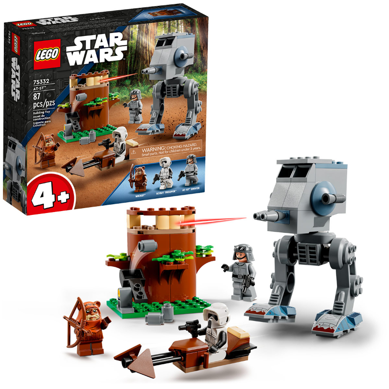O set inclui um AT-ST™ com peça inicial, um speeder de construção rápida e uma torre de vigia Ewok para que a brincadeira não tenha de esperar.