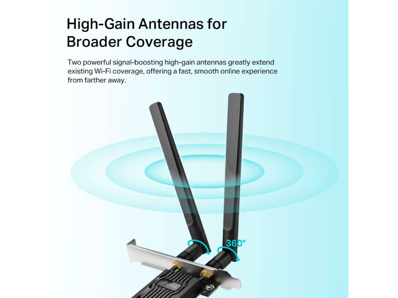 Duas poderosas antenas de alto ganho de sinal aumentam grandemente a cobertura Wi-Fi existente, oferecendo uma experiência online rápida e suave a partir de mais longe.