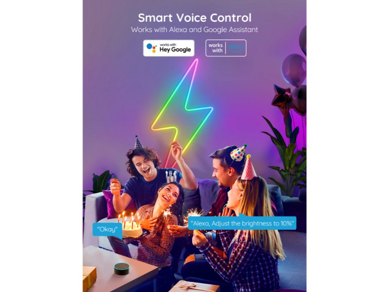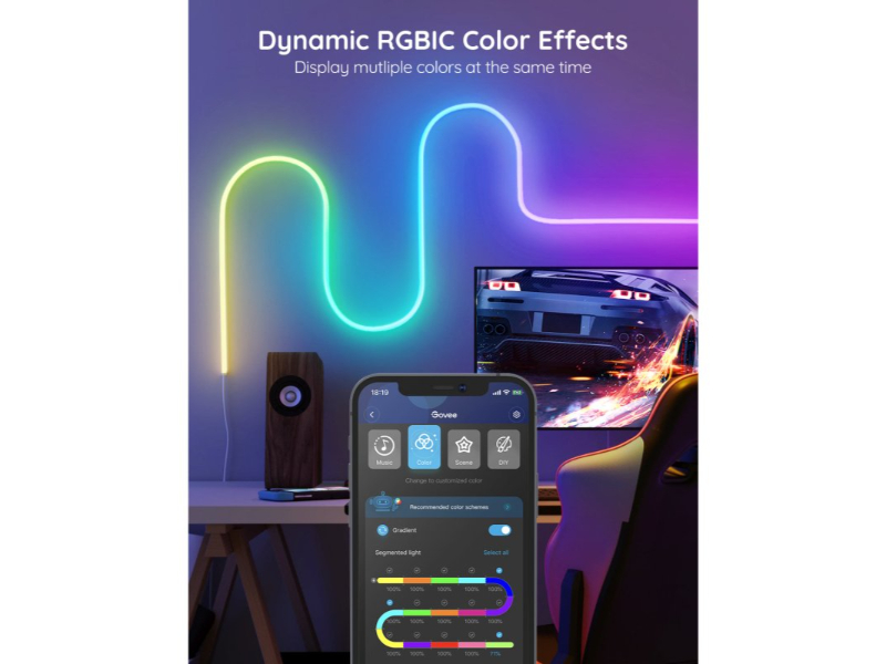 Descubra uma nova maneira criativa de iluminar os espaços da sua casa com as luzes de tira néon de LED GOVEE . Uma corda de luz RGBIC flexível com um exterior de silicone durável e luz difusa brilhante que pode ser dobrada nos cantos e moldada em diferentes formas. Deixe a sua criatividade brilhar.